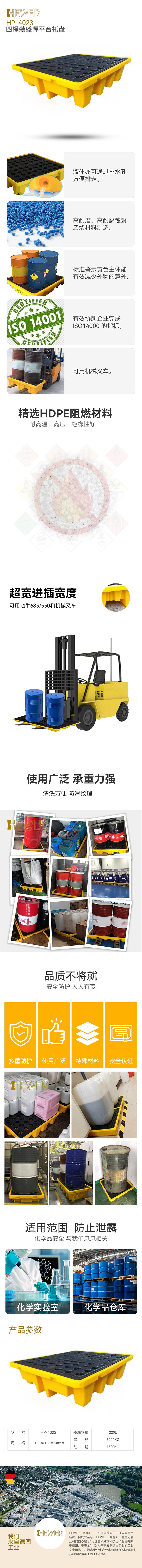 当前位置:首页 » 现货会员价 » 工业安全 » 化学品储存设备 » HEWER四桶装盛漏托盘熙骅化学品防漏塑料平台 MultiKEEP HP-4023 (1300x1100x300)mm±20mm