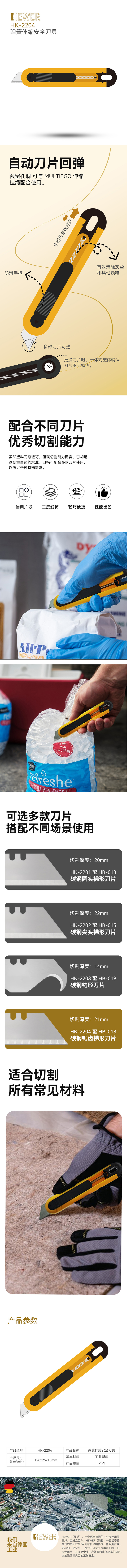 • HEWER MultiSAFE HK-2204 安全刀具标配HB-018碳钢齿狀梯型刀片